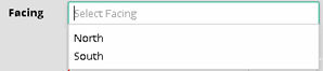 Facing: Select facing ( North, south, east etc.)