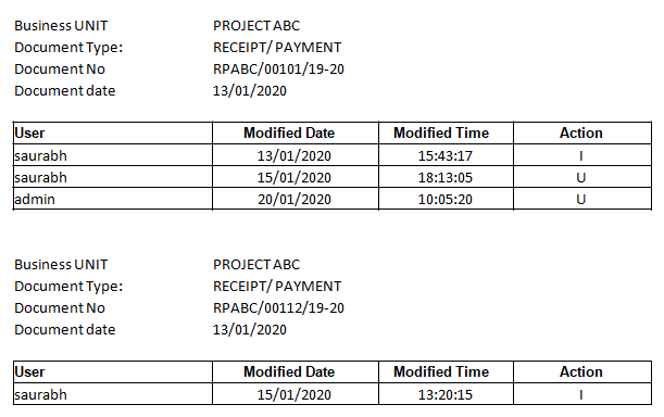 Change History of transaction in transaction level