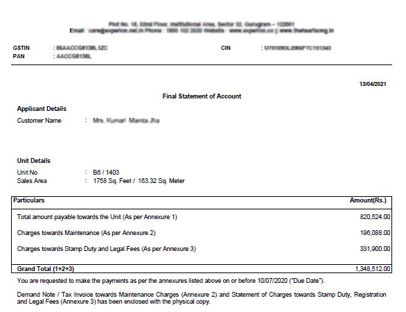 Offer of Possession is an intimation letter to customer for confirming that all dues outside of the agreement value have been cleared before handover of unit, i.e. before giving possession. In this letter the developer mentions all dues which had to be paid and receipt of payment details against them. Stamp Duty, legal fees have to be paid but they were not part of the agreement, are a payment for a service not being provided by the developer.