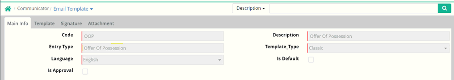 Step 2: Create an Email Template with the Entry Type- “Offer of Possession”