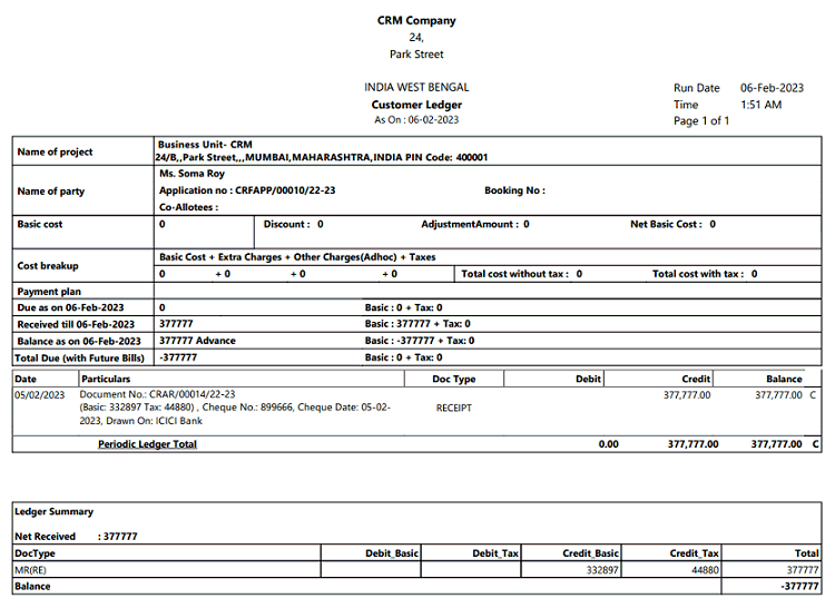 Now system will print only those details which are related to the Application entry in Applicant Ledger of any Provisional Booking.