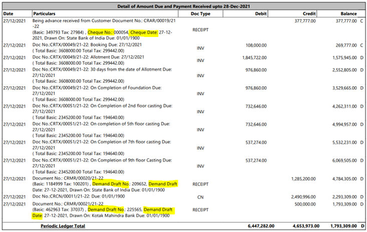 Payment mode of receipt entry will be shown as per the payment mode selected in receipt entry.