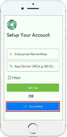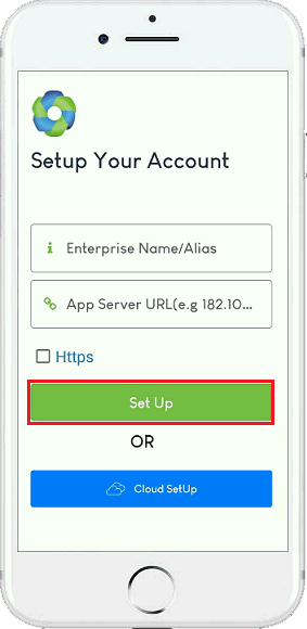 Step2: Enter your Enterprise name and on premises server URL/IP. HTTPS is required to be checked if your server is SSL certified and you have entered domain name. If you have entered IP Address as server url then SSL is not required hence left this unchecked.