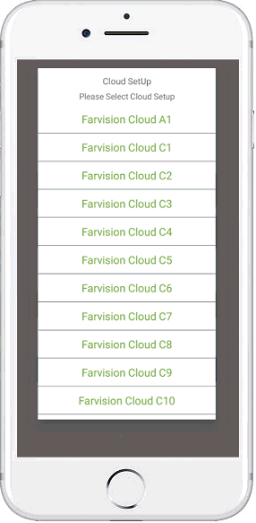 Step2: Press ‘Cloud SetUp’ if your Farvision application runs on Farvision Cloud server. Please contact your administrator to know your cloud server name. Choose your cloud server from “Cloud SetUp” option.