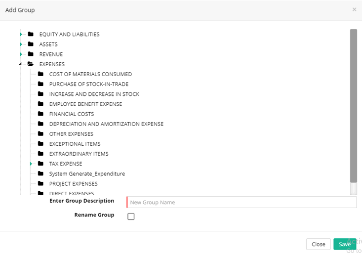 Finally, click ‘Save’ button to add the new account group under the selected parent account group.