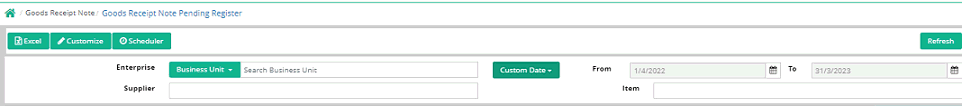 Goods Receipt Note Pending Register