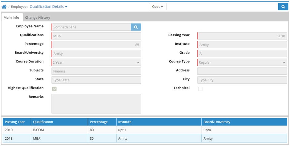 Qualification master is used for uploading post requests against job openings. Qualification type and Qualification stream are required to create a Qualification Master. Qualification master is tagged at the time of Post request, Job Application and Qualification details of an employee in the Employee Master.