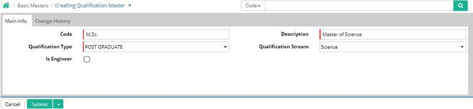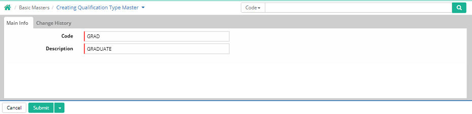 Code: Enter abbreviated name or short name of the qualification type. For example, GRAD for Graduate, POST GRAD for Post Graduate etc.